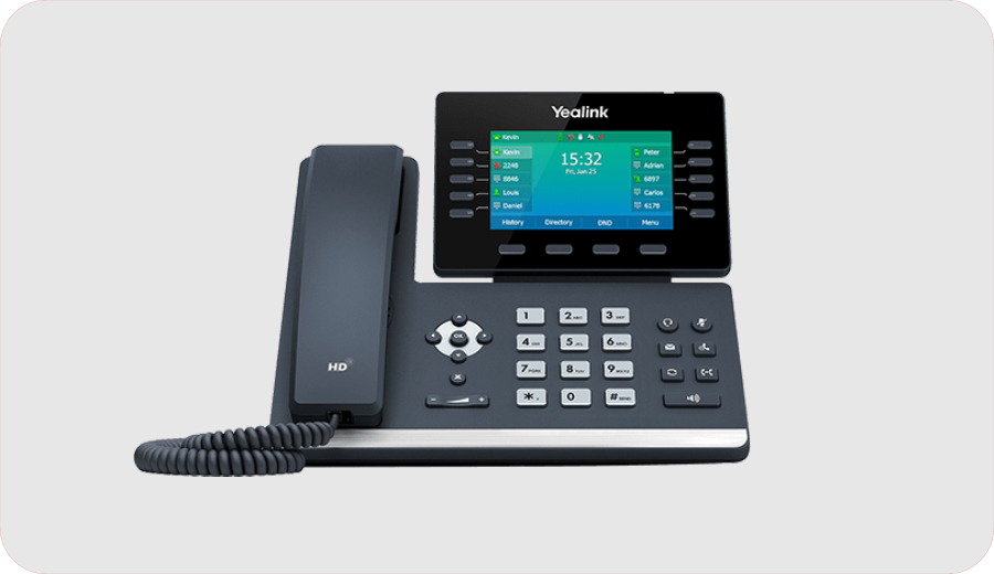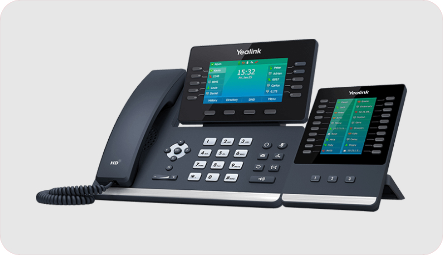 Especially designed for busy executives and professionals, Yealink SIP-T54W is an easy-to-use Prime Business Phone with an adjust- able 4.3-inch color LCD screen that you can easily and flexibly find the comfortable viewing angle according to the personal and envi- ronmental needs. With the built-in Bluetooth 4.2 and the built-in dual band 2.4G/5G Wi-Fi, the SIP-T54W IP Phone ensures you to keep up with the modern wireless technology and take the first chance in the future wireless age. Its built-in USB 2.0 port allows for USB recording or a direct wired/wireless USB headset or up to three Yealink EXP50 expansion modules connection. Benefitting from these features, the Yealink SIP-T54W is a powerful and expandable office phone that delivers optimum desktop efficient and produc- tivity.